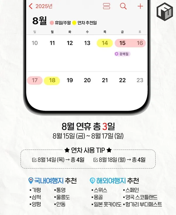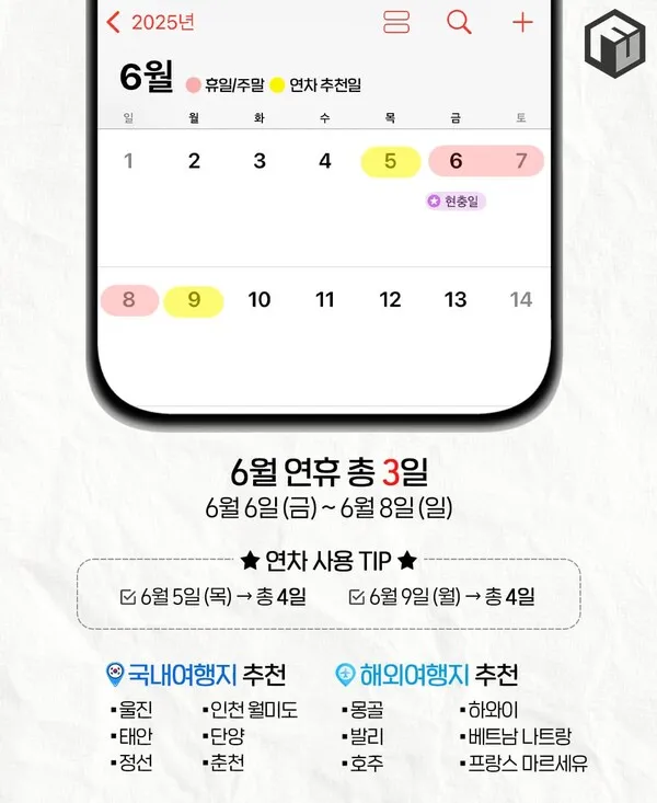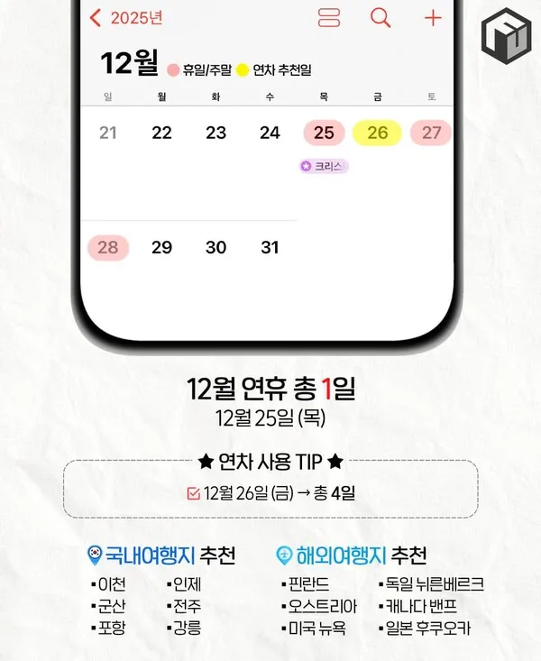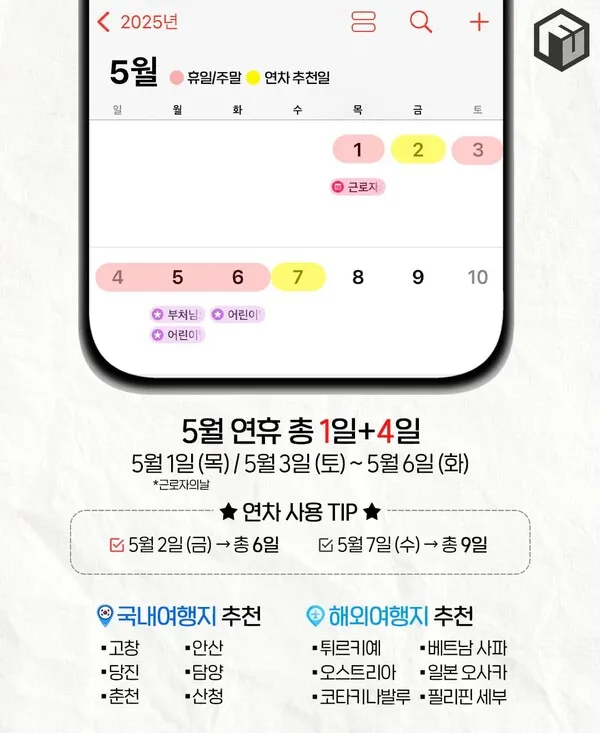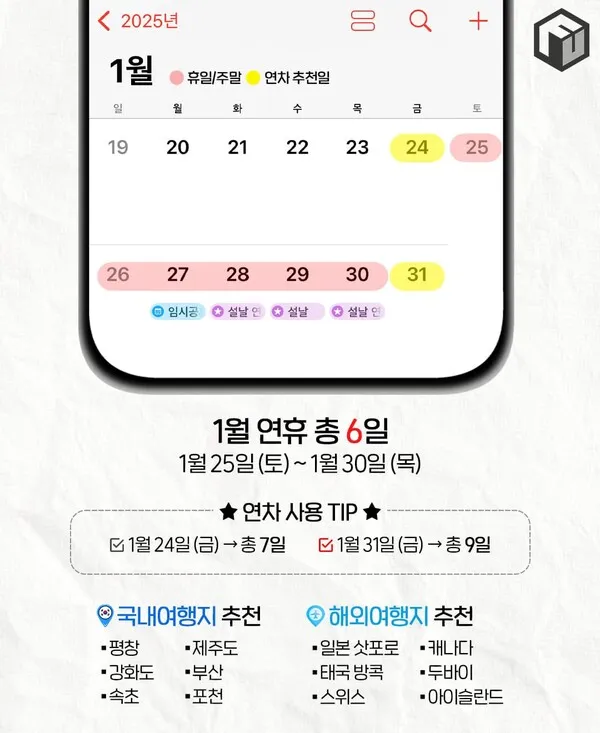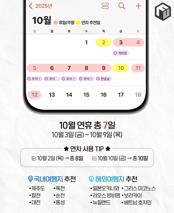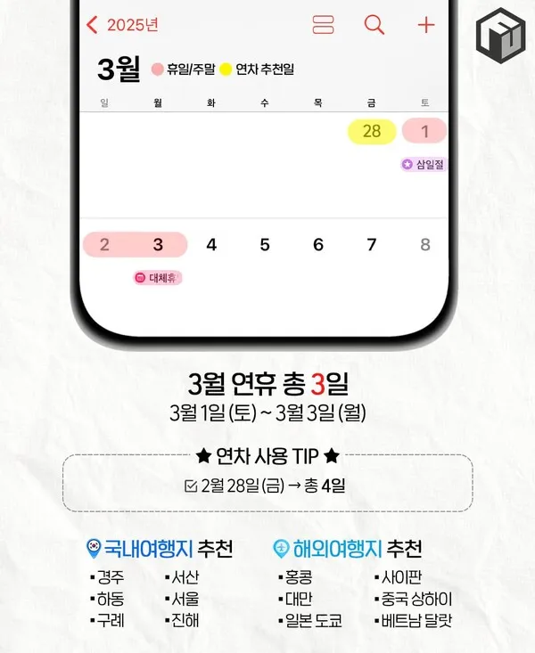 [연휴] 2025년 휴일달력(국내/해외 추천여행지)🧡