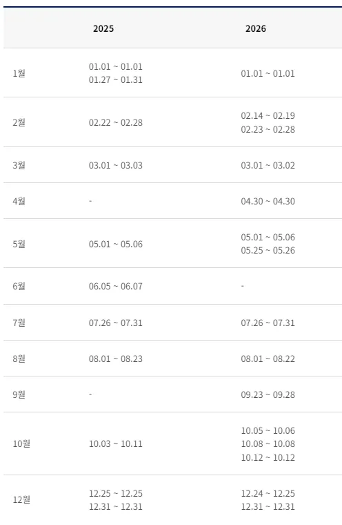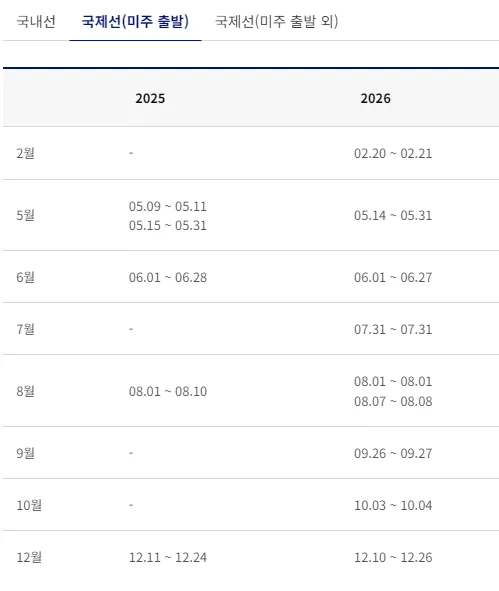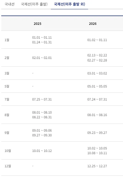 [항공사] 대한항공 / 아시아나 성수기 구간(2025-2026)