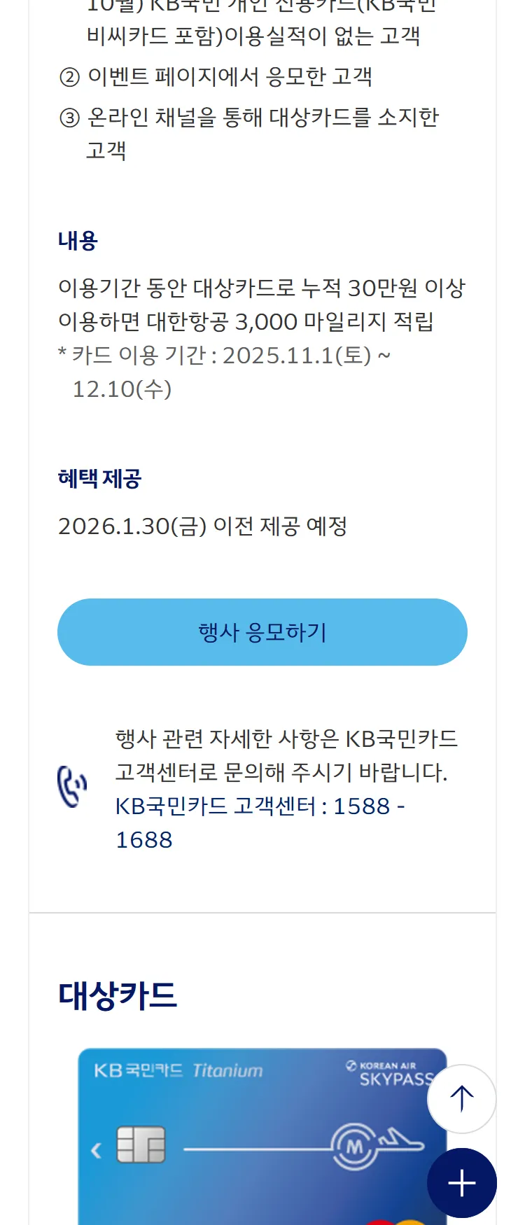 [대한항공][대한항공 x KB국민카드] 3천 마일리지 적립 혜택을 드립니다. ('25.11)