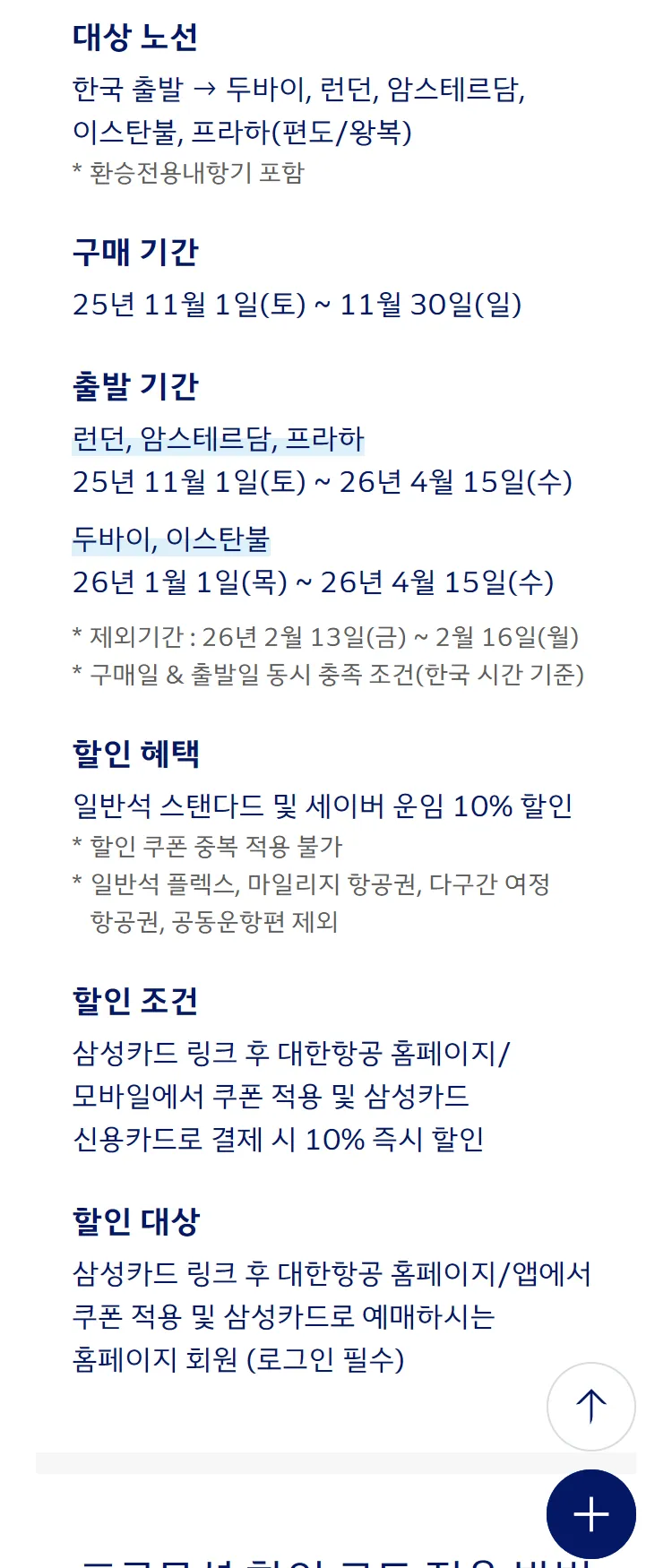 [대한항공][대한항공 X 삼성카드 LINK] 연말을 더욱 특별하게, 유럽 & 두바이행 일반석 10% 할인