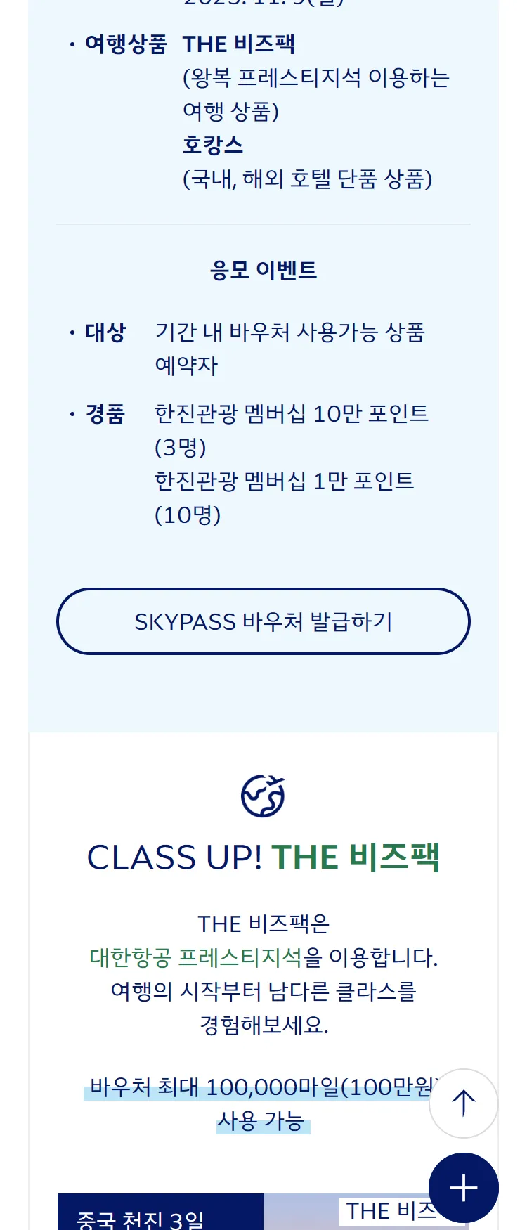 [대한항공]대한항공 마일리지몰 한진관광 THE 비즈팩 프로모션
