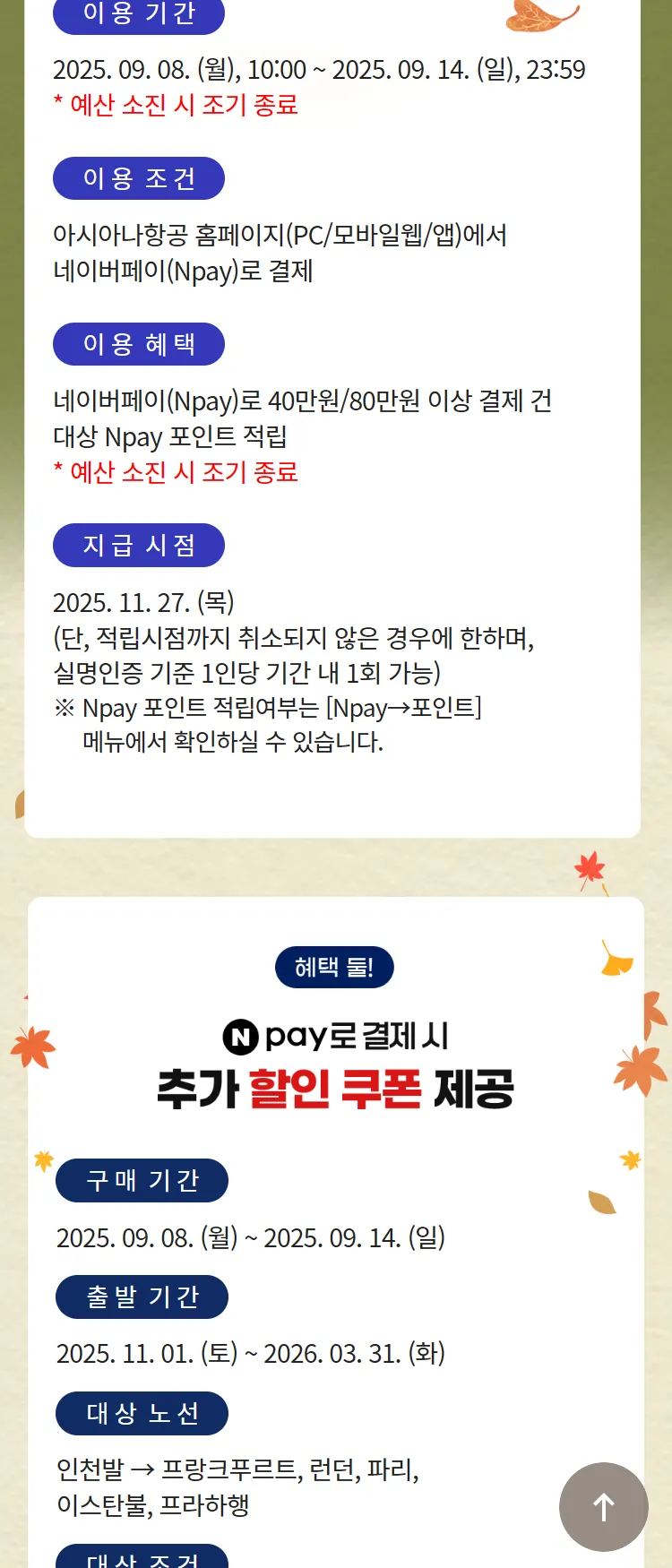 [아시아나항공]네이버페이로 결제 시 포인트적립