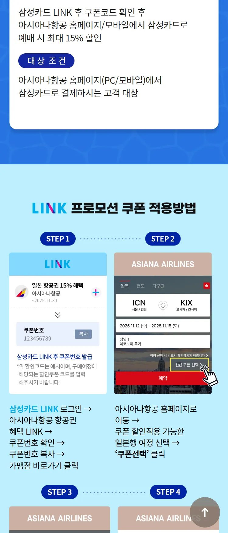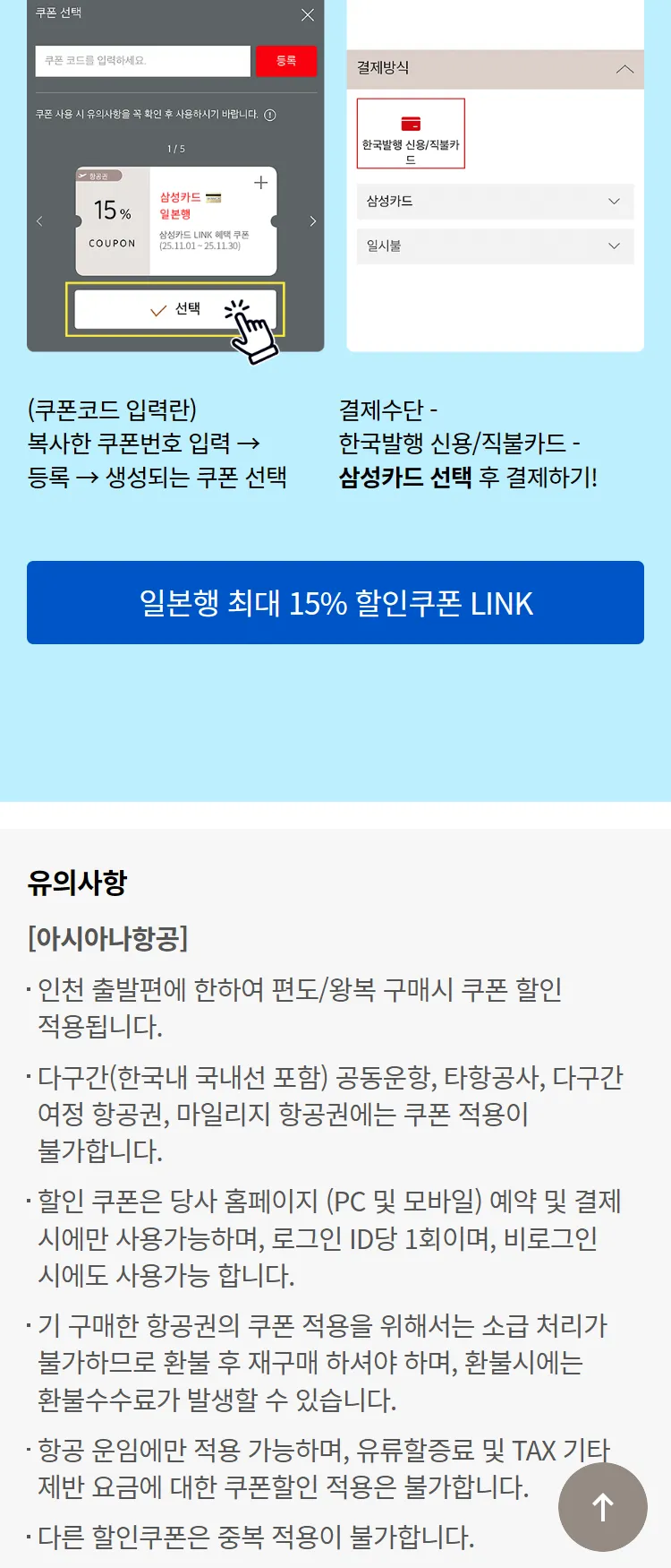 [아시아나항공]삼성카드 LINK 혜택을 링크하면 일본노선 항공권 최대 15% 할인