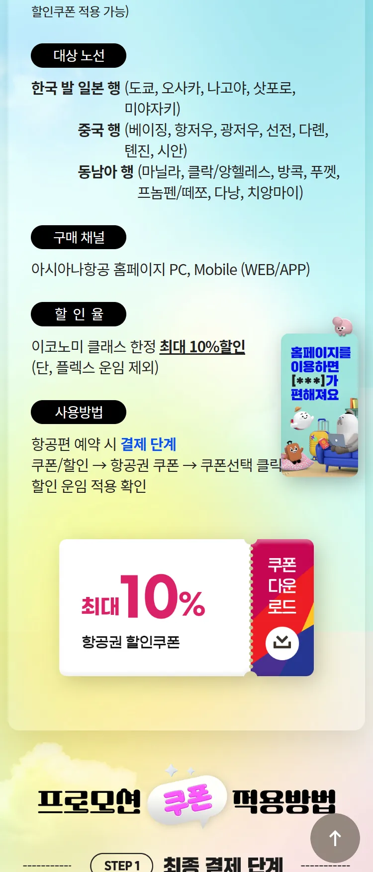 [아시아나항공]오늘, 내일, 모레 출발 전용 항공권 할인쿠폰