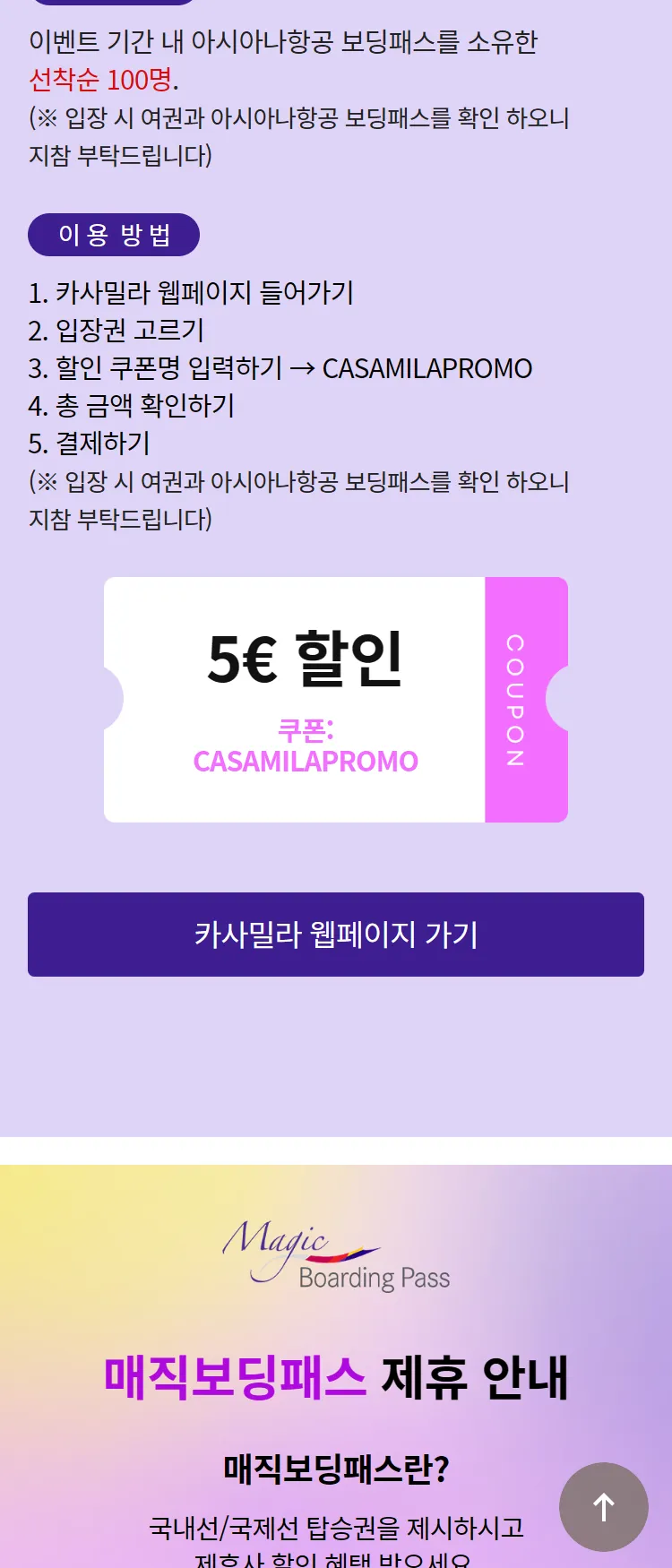 [아시아나항공]카사밀라 입장 할인 혜택 프로모션
