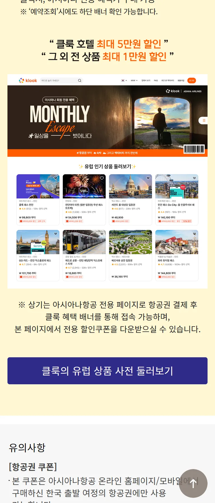 [아시아나항공]클룩X유럽 항공권 구매하면 호텔 최대 5만원 할인!