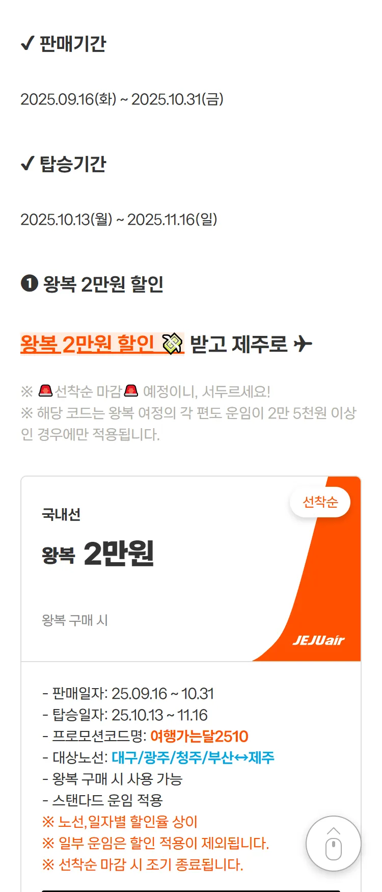 [제주항공]매일 선착순 할인!