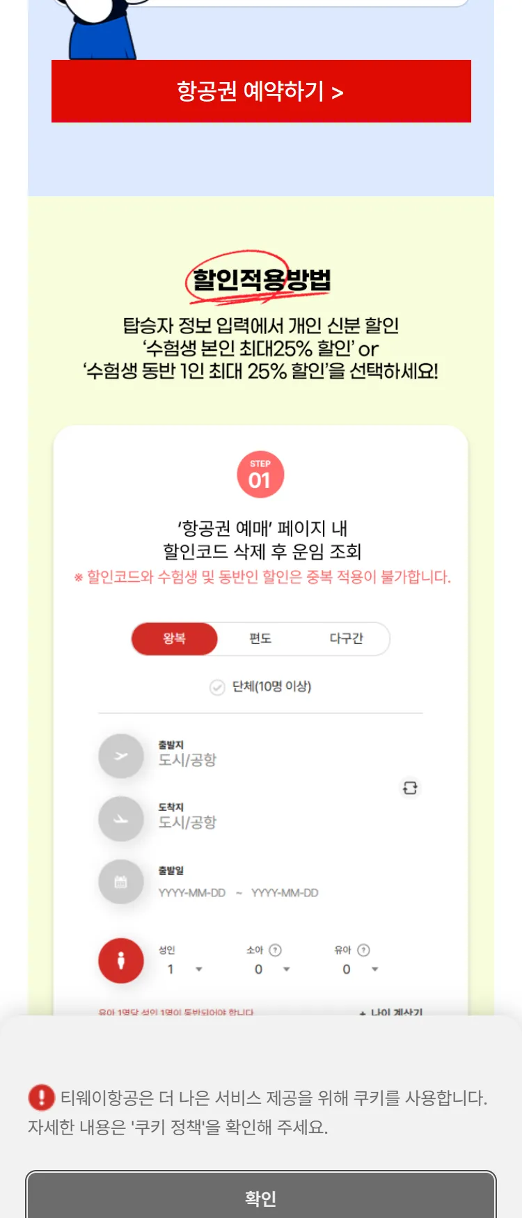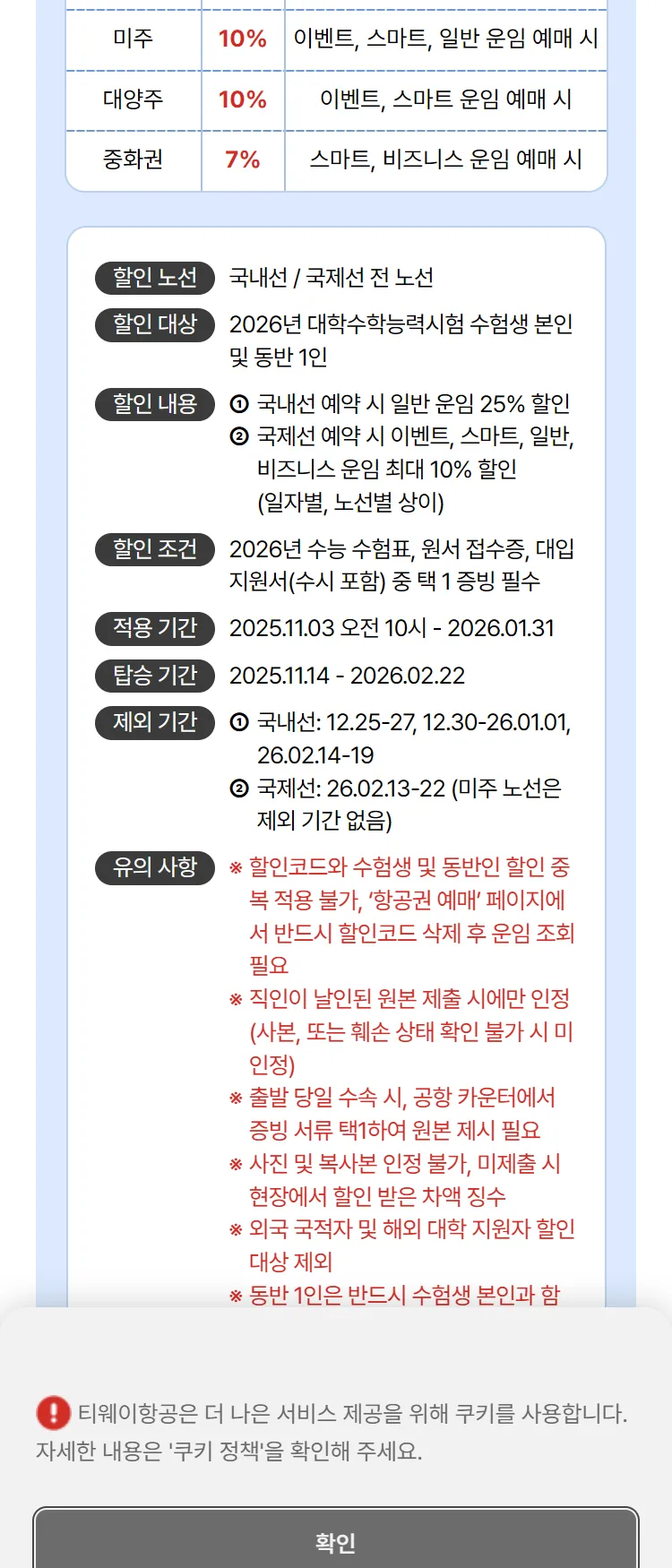 [티웨이]2026년 수능 수험생 최대 25% 할인