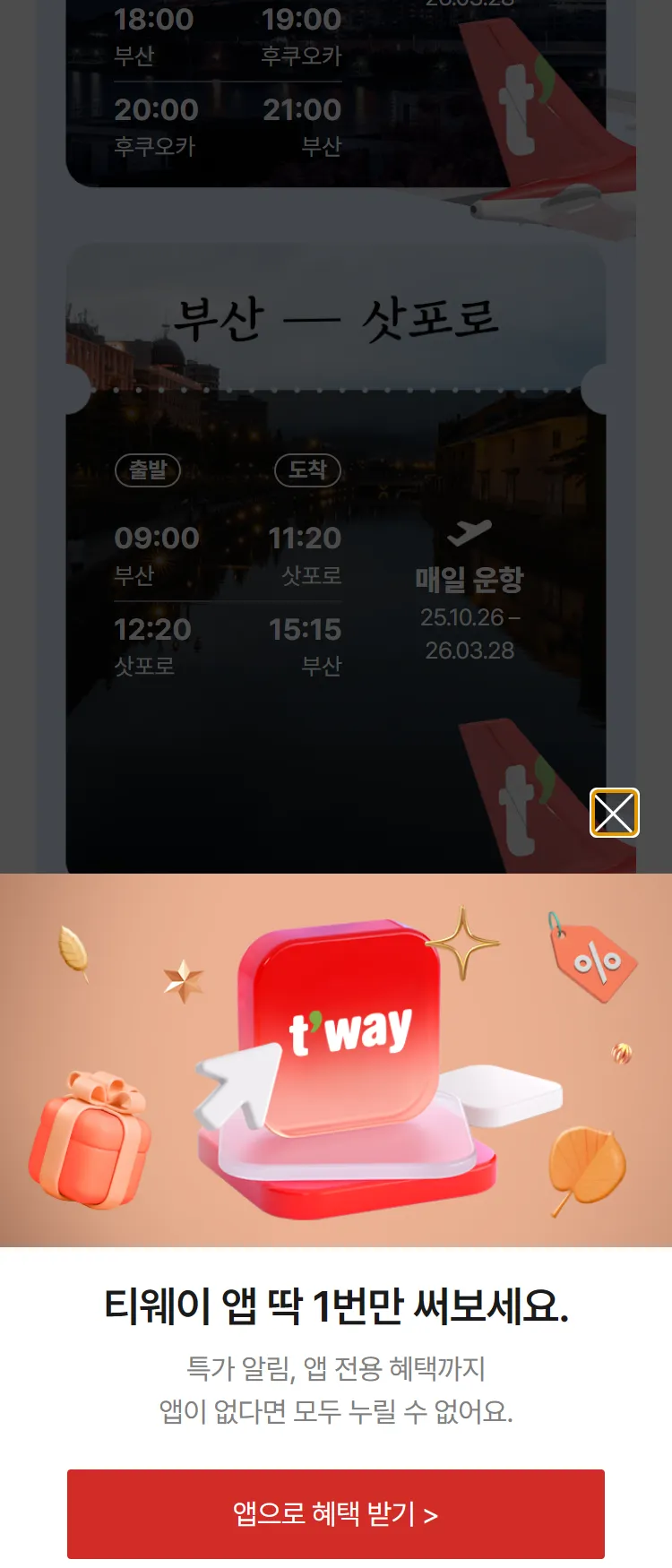 [티웨이]부산-후쿠오카&삿포로 신규 취항 특가