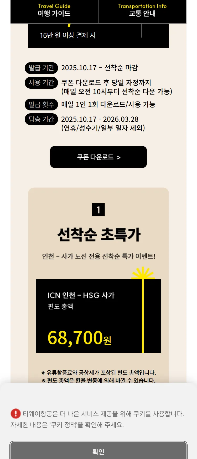 [이스타항공]12월~26년1월 얼리버드 특가