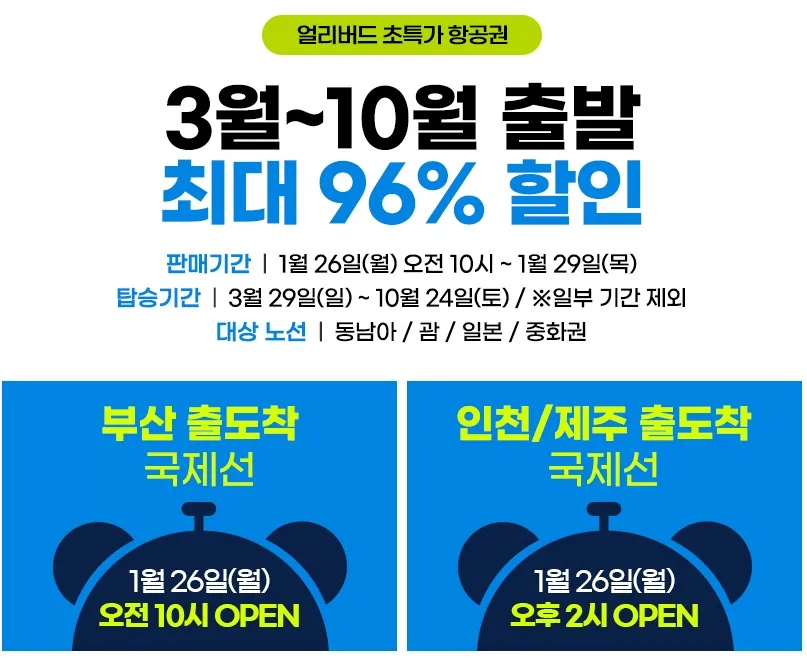 1. 얼리버드 초특가 이벤트가 시작됩니다. 3월부터 10월까지 여행 가능한 항공권을 미리 준비하세요!