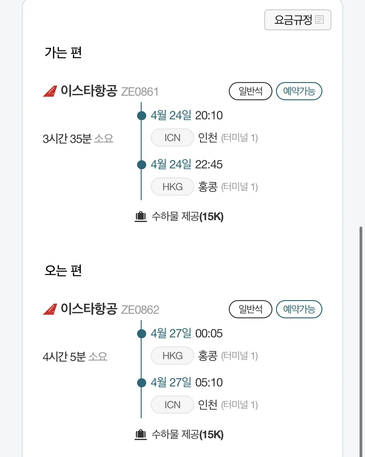 인천에서 홍콩까지 가는 저렴한 왕복 항공권 - 약 24만원